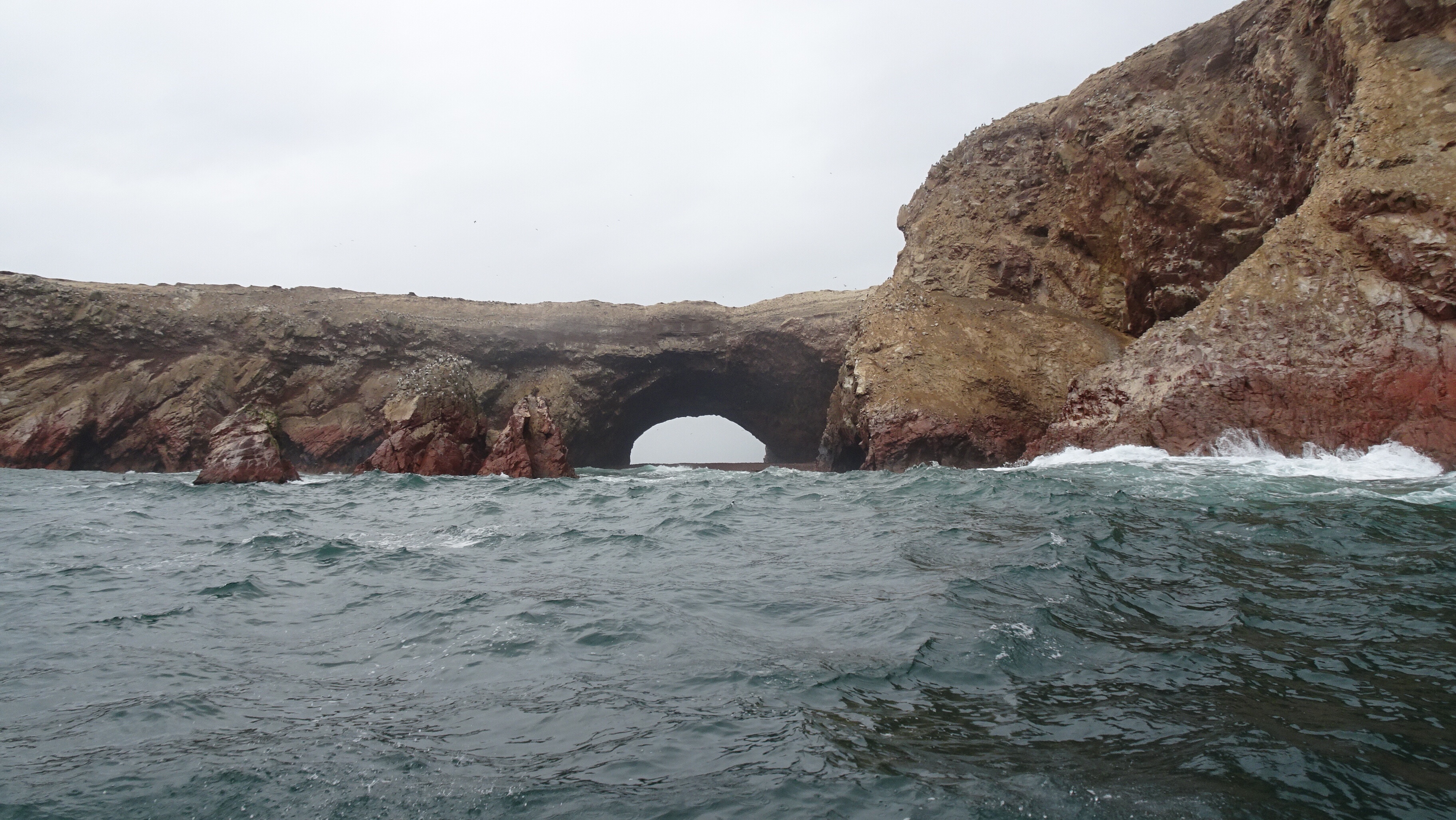 När vi klev av bussen blev vi körda till hamnen. Fler människor, läs turister, än vad vi väntade oss. Små snabba, öppna motorbåtar som tog ca 20 pers körde oss runt Islas Ballestas under ca två timmar. Massvis med fåglar. Det som liknade vår skarv gjorde de annars rödbruna (järnoxid) klipporna helt svarta. 17 glada skarvar per kvadratmeter, meddelade vår guide.