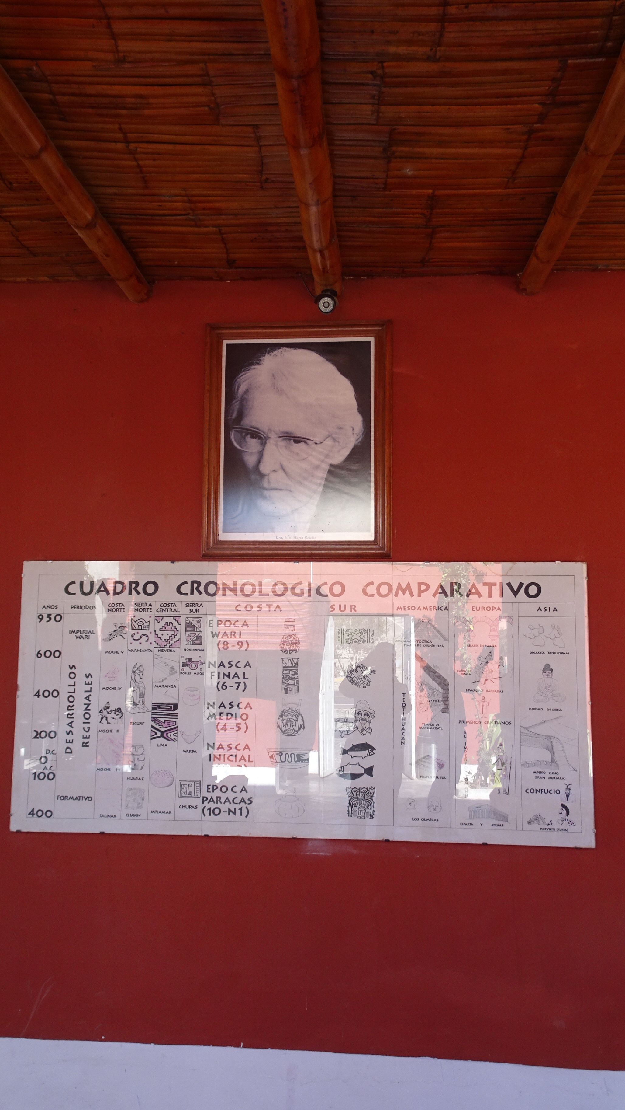 Peruanerna i området är mycket stolta över Maria Reiche, en tysk kvinna från Dresden. Matematiker och lite annat. Tog sig från Tyskland till Peru när Adolf började stöka till det.