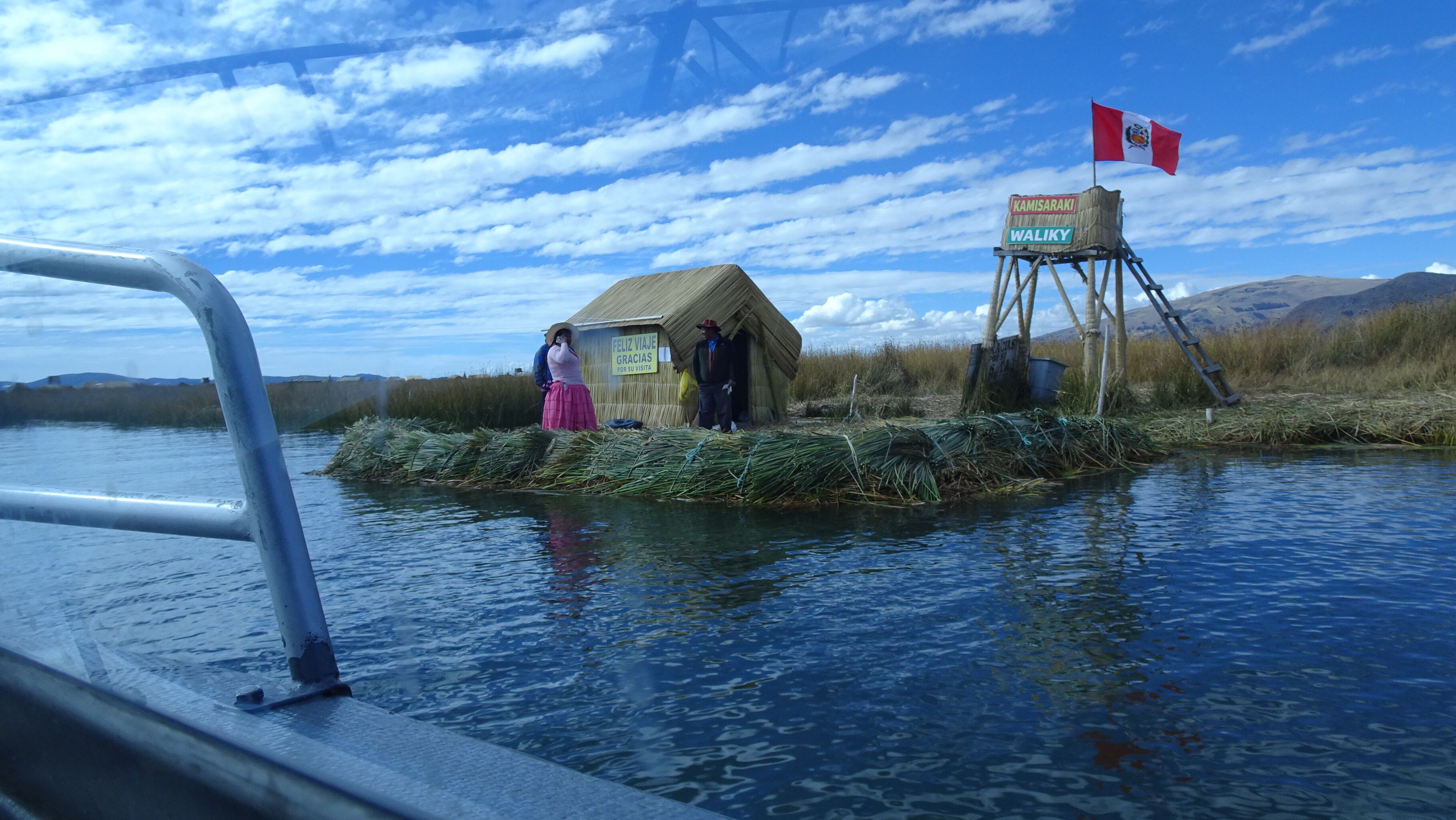 Vi gjorde ett stopp på flytande öar som byggts av Uros, en Pre-Inca kultur som valde att bygga öar av vass och förankra dem ute i sjön för att undvika att helt gå under när spanjorerna härjade. Uros klär sig, liksom alla ursprungs-Peruaner i fantastiska färger. Dom små barnen är helt enkelt skit-gulliga. Ibis-fåglar här och var. Varje ö har ca fem familjer, och det finns inga ö-råd. Men väl en ledare för varje ö. Uros bygger den typ av vassbåtar, sedan ett par tusen år tillbaks, som Thor Heyerdal seglade över Stilla Havet och nästan Atlanten på, Kon-Tiki och Ra.
