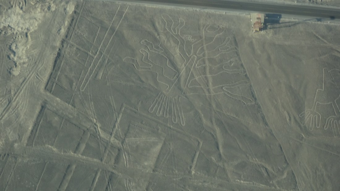 Som jag skrev igår var det mer Nazca-linjer och, viktigt, geoglyfer idag. Dvs de figurer som öknen är full av. Apan, grodan, baby-kondoren, påfågeln och många fler. Idag tittade vi på några från närmare håll. Ett par mindre kullar, ett torn byggt för ändamålet. Vi har haft lokala guider som kört oss än hit och än dit. Ett bra val, för vi får reda på väldigt mycket mer, mycket intressant.